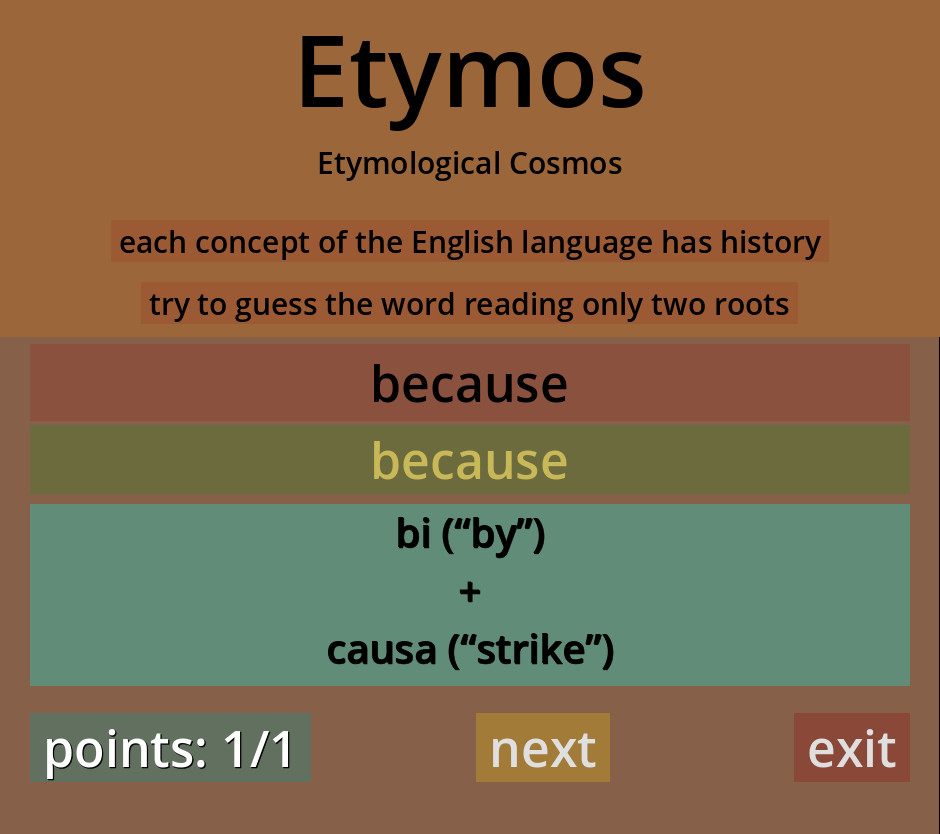Try to guess the word knowing only the old roots.